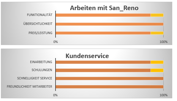 Ich würde mich wieder für San_Reno entscheiden. Es ist praxisorientiert aufgebaut, zudem ist der Praxisbezug der Fa. Comteos für uns sehr wichtig. Anregungen zur Optimierungen oder die programmtechnische Umsetzung von Kundenwünschen werden schnell individualisiert in San_Reno eingearbeitet.“